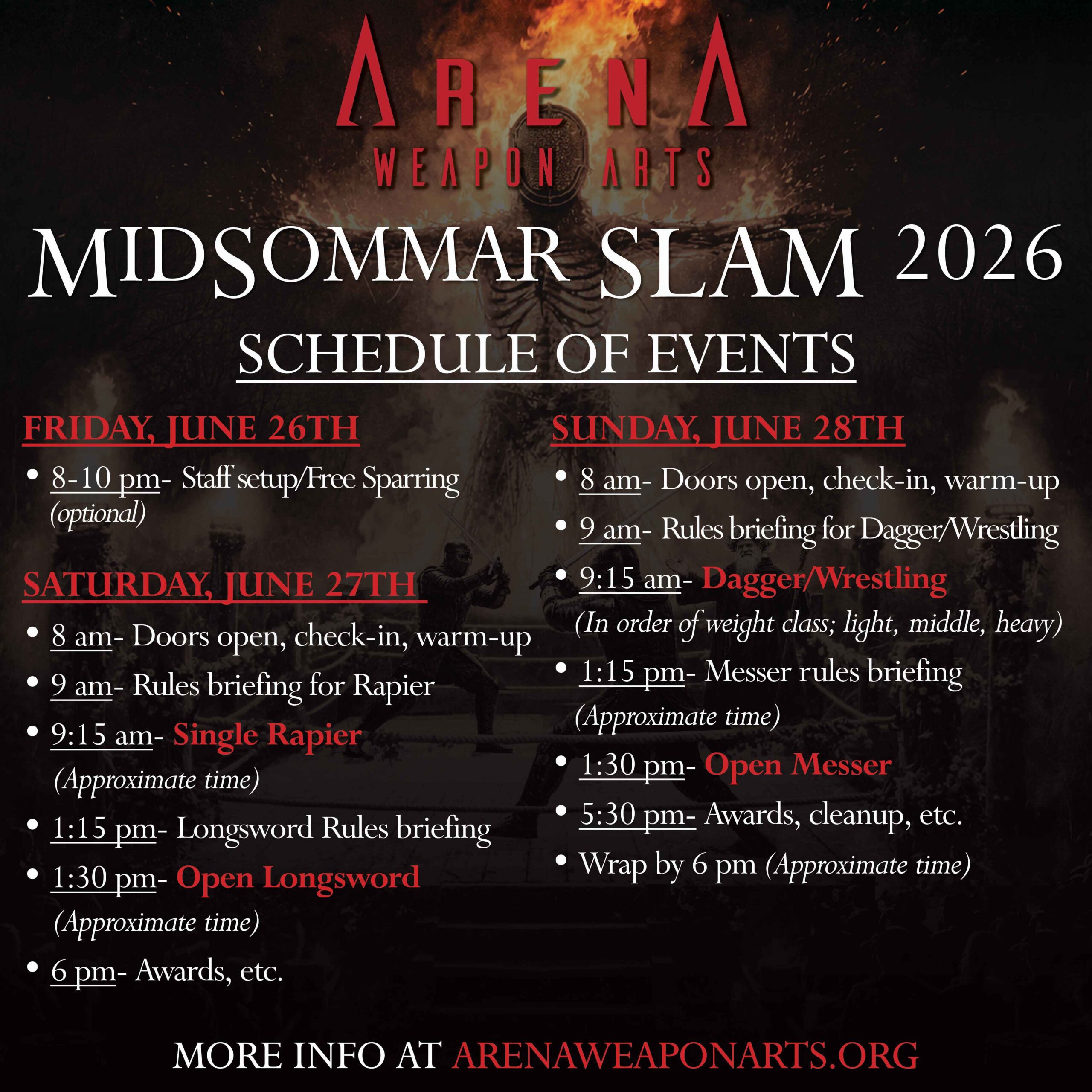 Welcome to Midsommar Slam! Two full days of competition in Rapier, Longsword, Dagger, and Messer. We will also be hosting a series of workshops ranging from more traditional HEMA Offerings […]